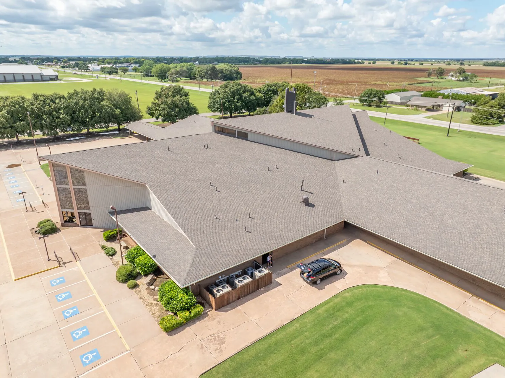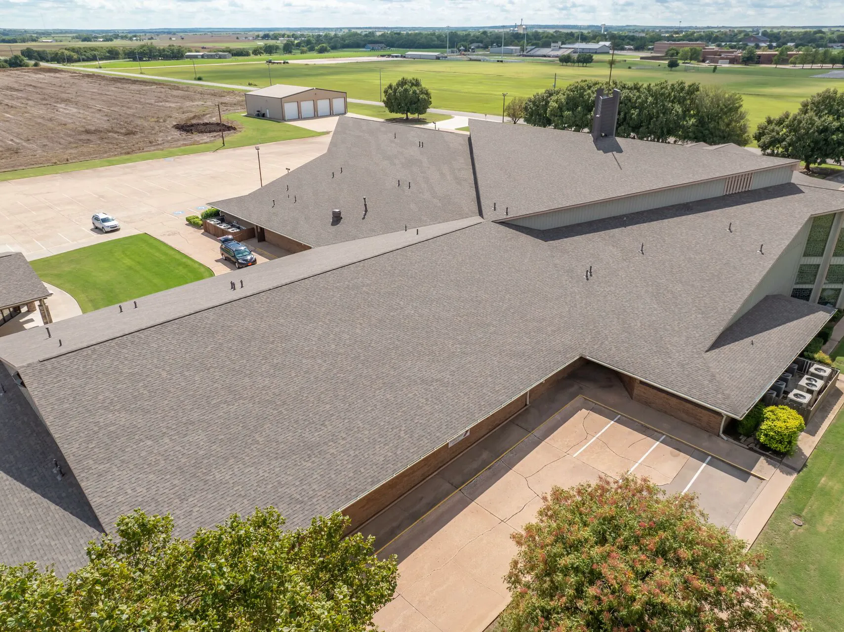This project resulted in a full roof replacement of the asphalt shingles with a low slope double felt application. The seamless guttering system was installed and a class 4 hail resistant shingle.
