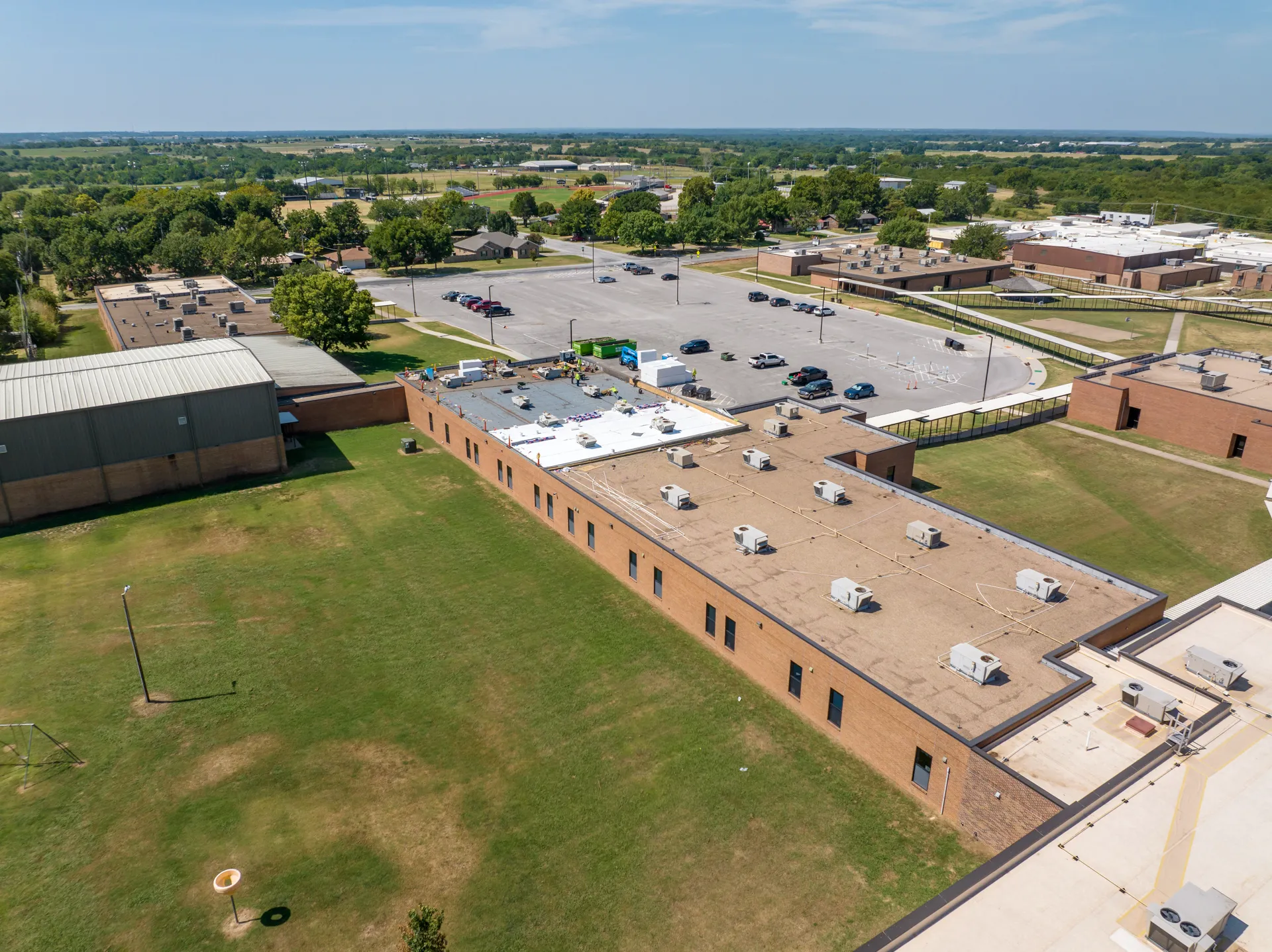 This public school experienced damage to the roof and HVAC, and was restored with a full NDL warranty TPO system that brought the system up to contemporary standards. The roof was completed prior to school starting.