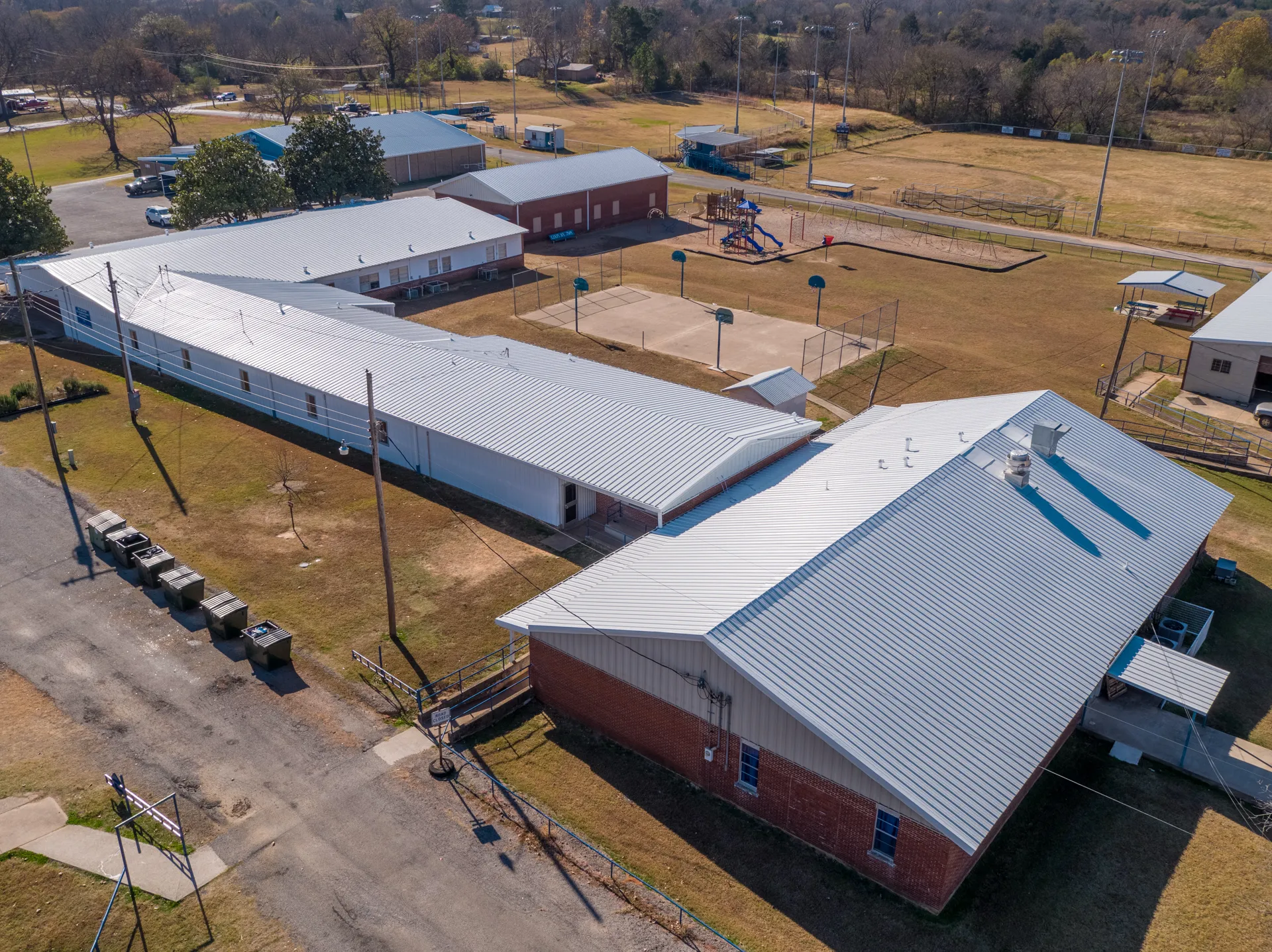 Next Phase completed a full replacement of every roof on this school campus. The administration building received standing seam metal roofing and custom metal details around rooftop HVAC equipment, eliminating leaks that had been plaguing the school for years. The auditorium received an upgraded insulation package including a complete redeck and structural ISO insulation package. The other buildings on campus received new metal roofs and upgraded insulation to meet contemporary building code standards. This project was completed during summer break without any disruption in normal operations or class schedules.